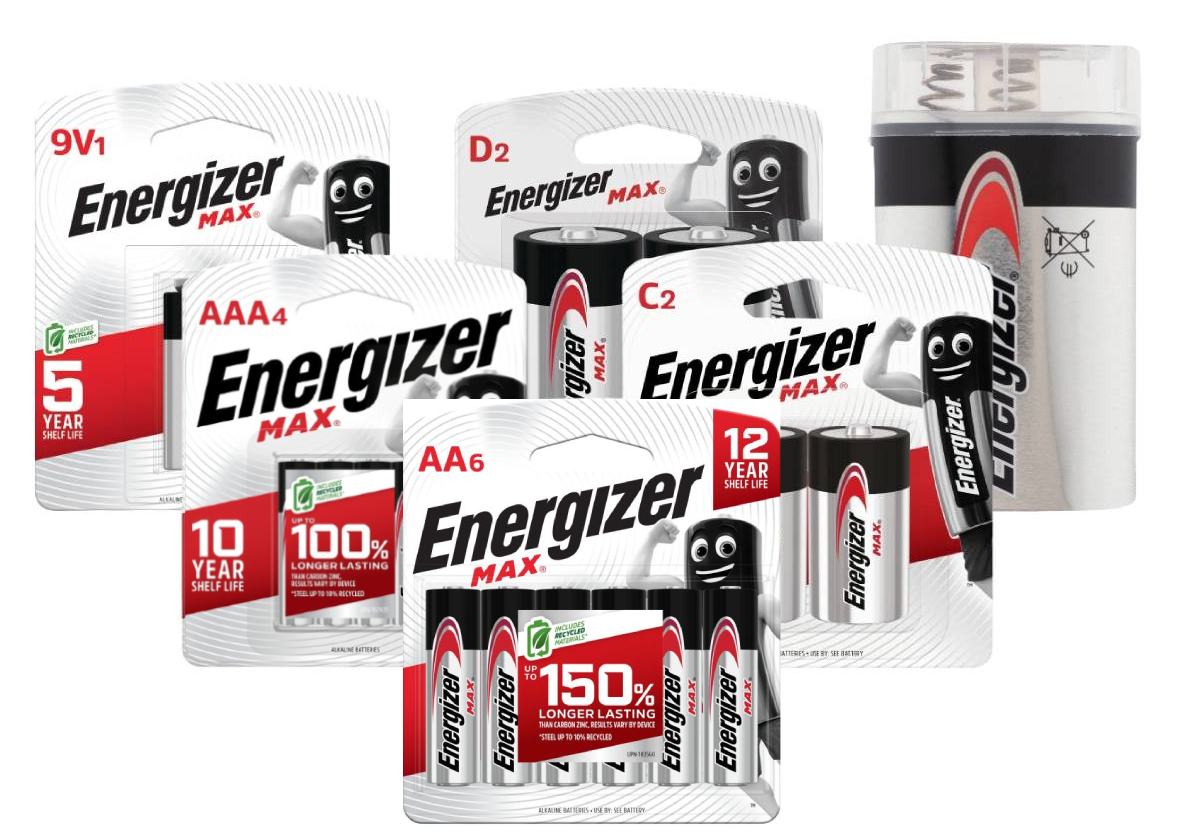 • Includes recycled materials *Steel up to 10% Recycled. AA/AAA Only, Specially marked packages