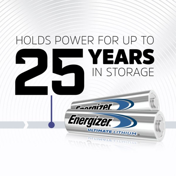 Nothing outlasts Energizer® Ultimate Lithium AA batteries. The Energizer® Ultimate Lithium batteries are the #l longest-lasting AA batteries – complete with leak resistance and performance in extreme temperatures (-400F to 1400F or -400C to 600C). To ensure your favorite devices operate at their peak performance, depend on Energizer® Ultimate Lithium batteries for work, play, and home.