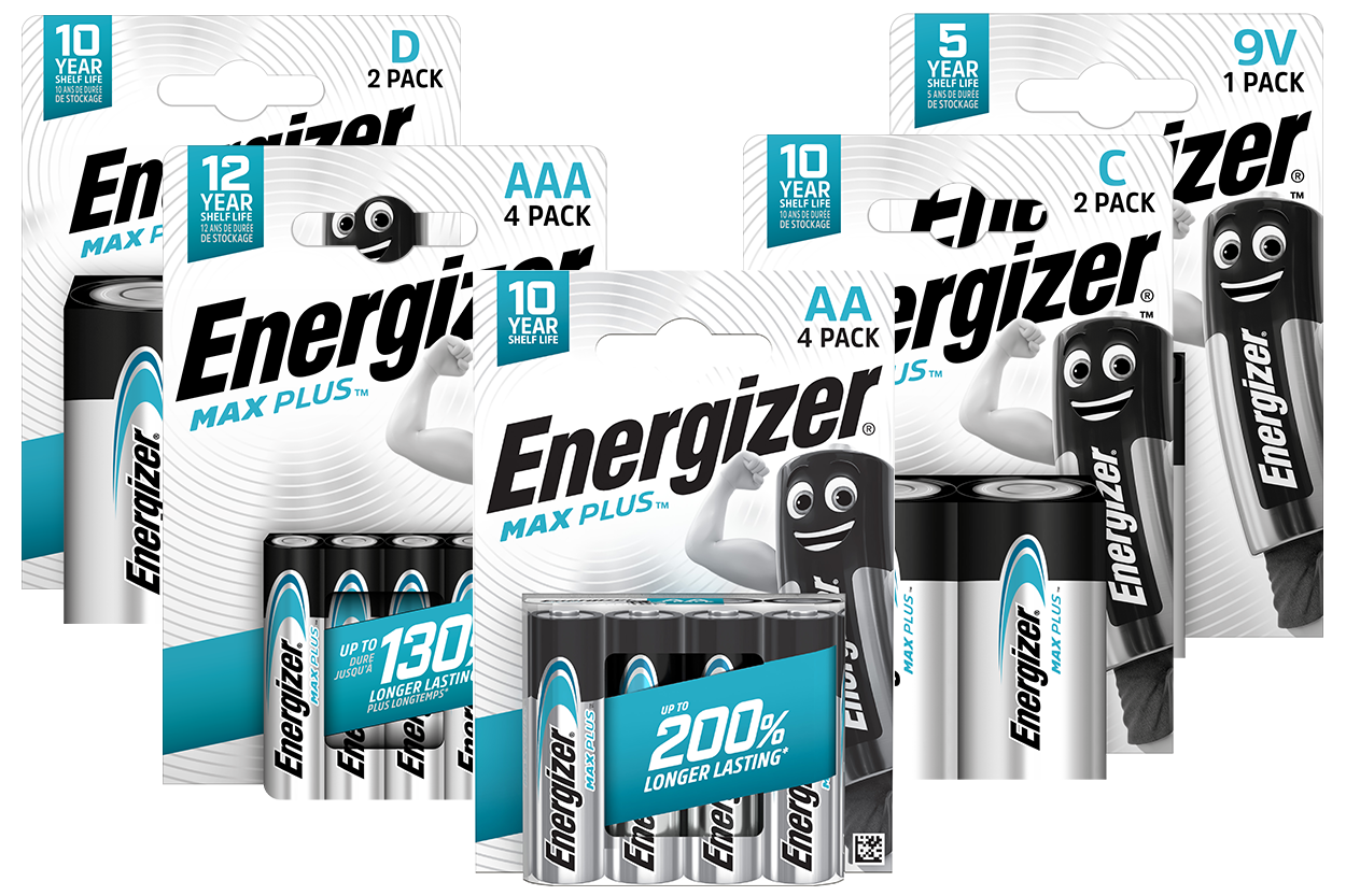 Introducing, our new line of performance alkaline batteries! Max Plus™ is our Longest Lasting Alkaline AA & AAA Batteries that provide powerful performance for your devices! They also hold their power for up to 10 years while in storage, so you have power for the devices you love when you need it most.