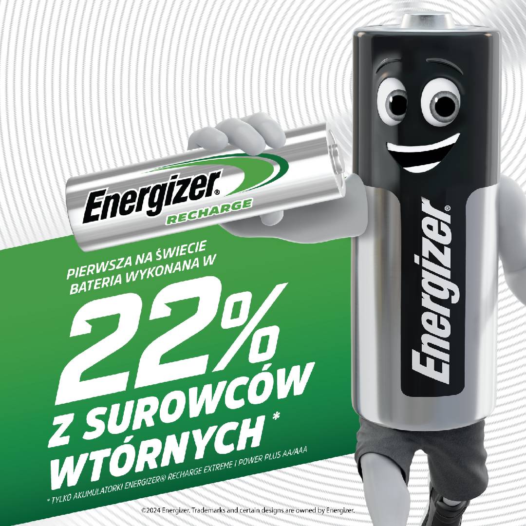 • Innowacja Energizer: Pierwszy na świecie akumulator AA wykonany w 22% z materiałów pochodzących z recyklingu