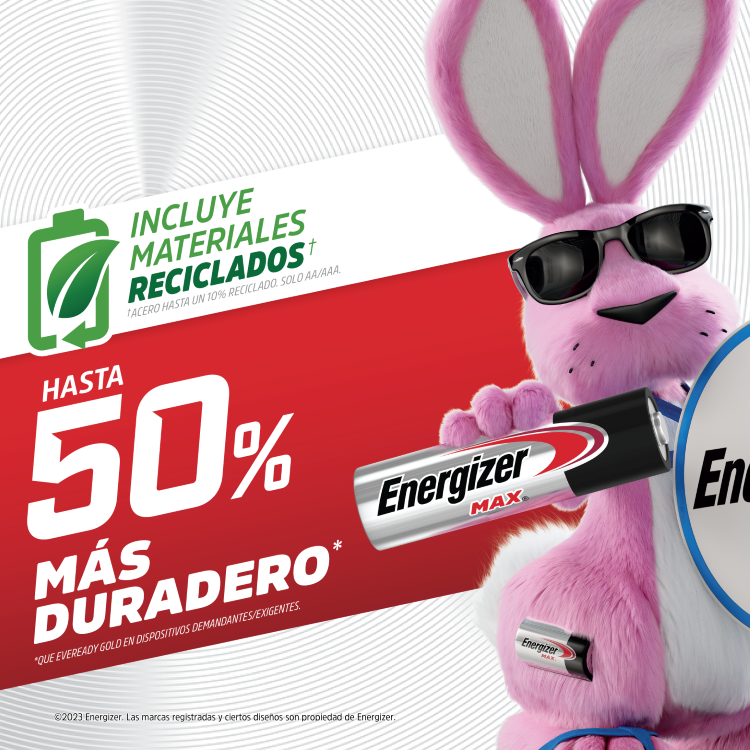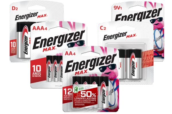La familia Energizer MAX® es energía duradera. Los tamaños AA y AAA son ahora nuestras pilas MAXTM de mayor duración. También mantienen su energía hasta 12 años mientras están almacenadas, para que tenga energía para los dispositivos que más le gustan cuando más lo necesite. Cuando se trata de juguetes, cámaras digitales y otros dispositivos valiosos, puede sentirse seguro sabiendo que tiene la energía de larga duración y la protección que espera de Energizer®.